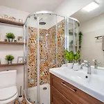 Tot de badkamerfaciliteiten van de gesitueerde in Zaton Villa Karmen behoren ook een douche en een wasmachine.